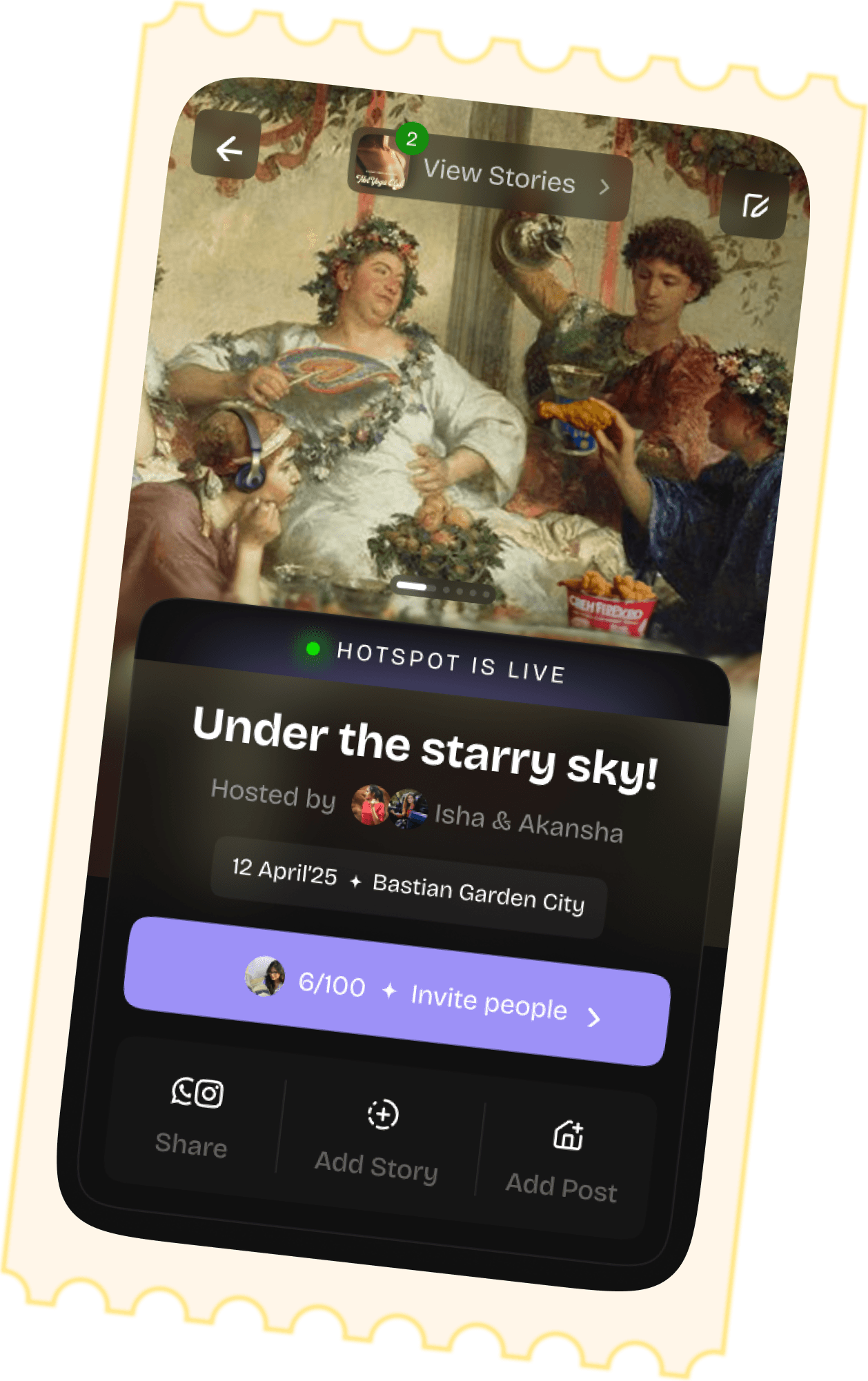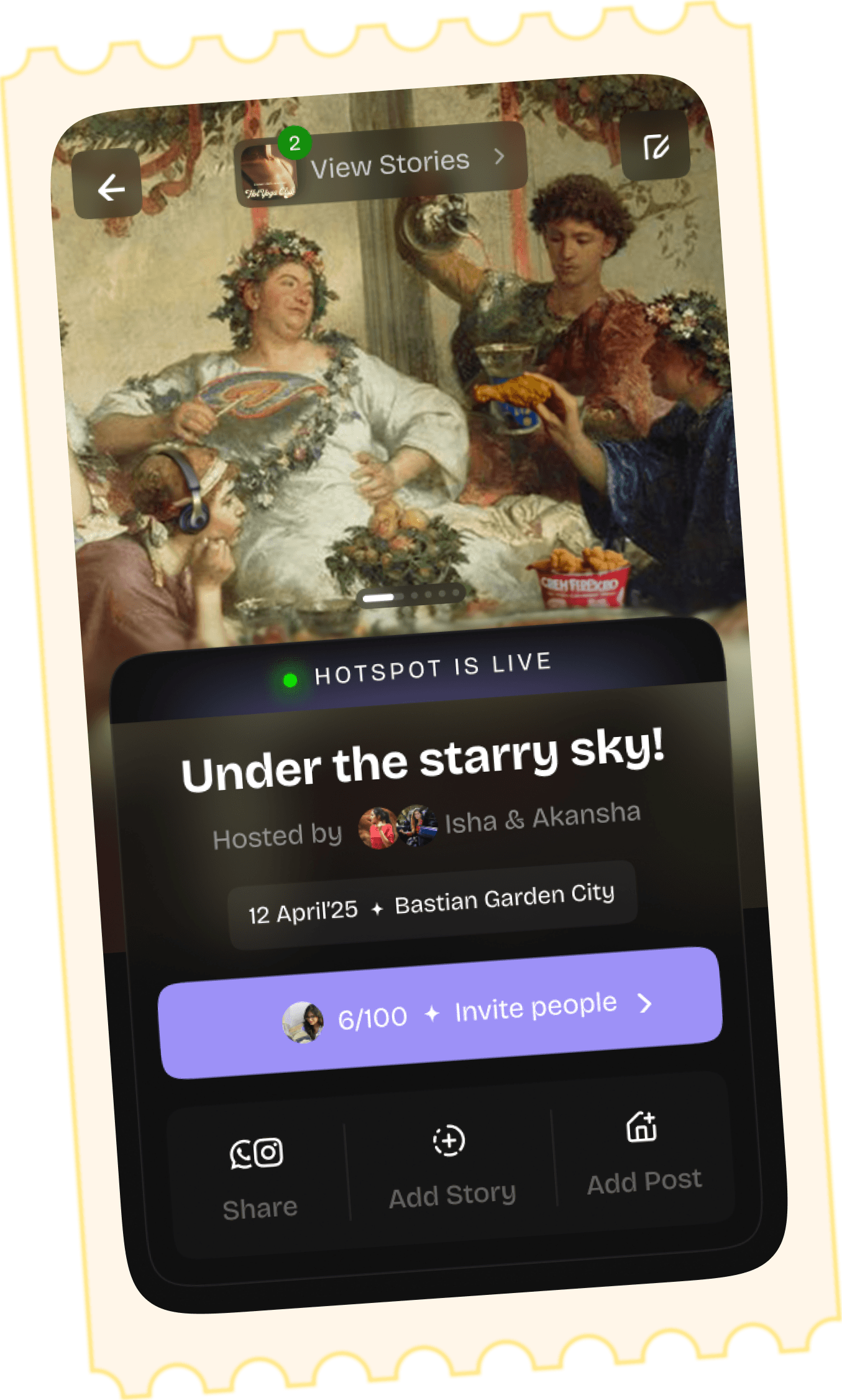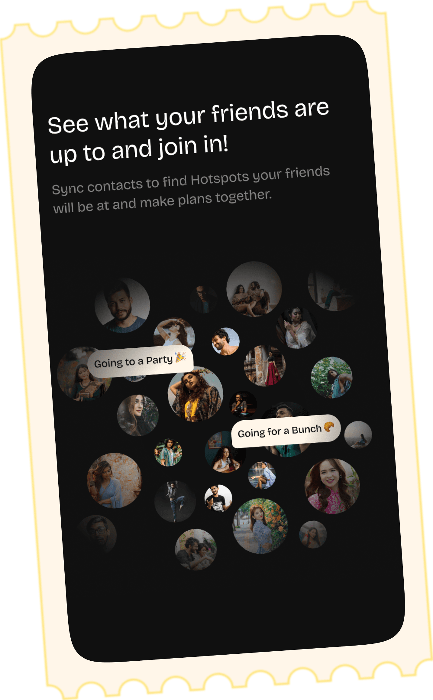 Download the app from App Store or Play Store. Complete your profile, add your interests - this helps the right hosts find you and send you Hotspot invites. Accept invites or request invites to Hotspots you like, or create your own!
