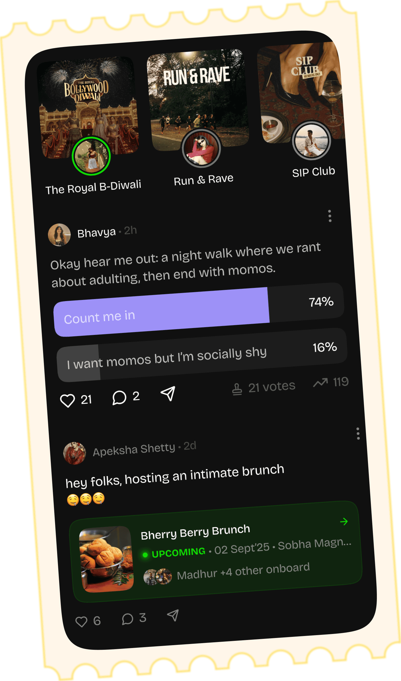 Chat, match plans, and step out with friends. Share life updates, create fun polls.